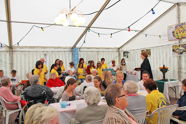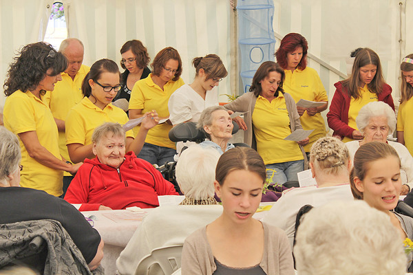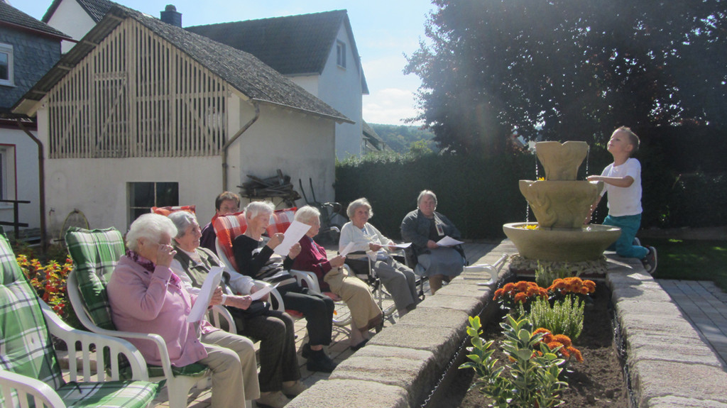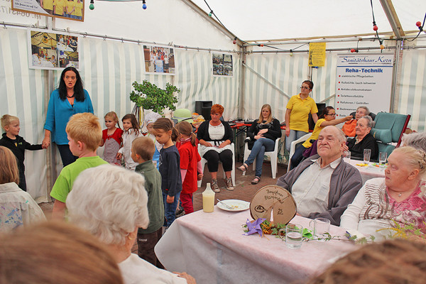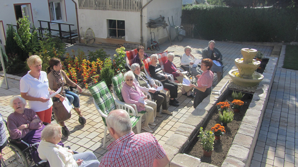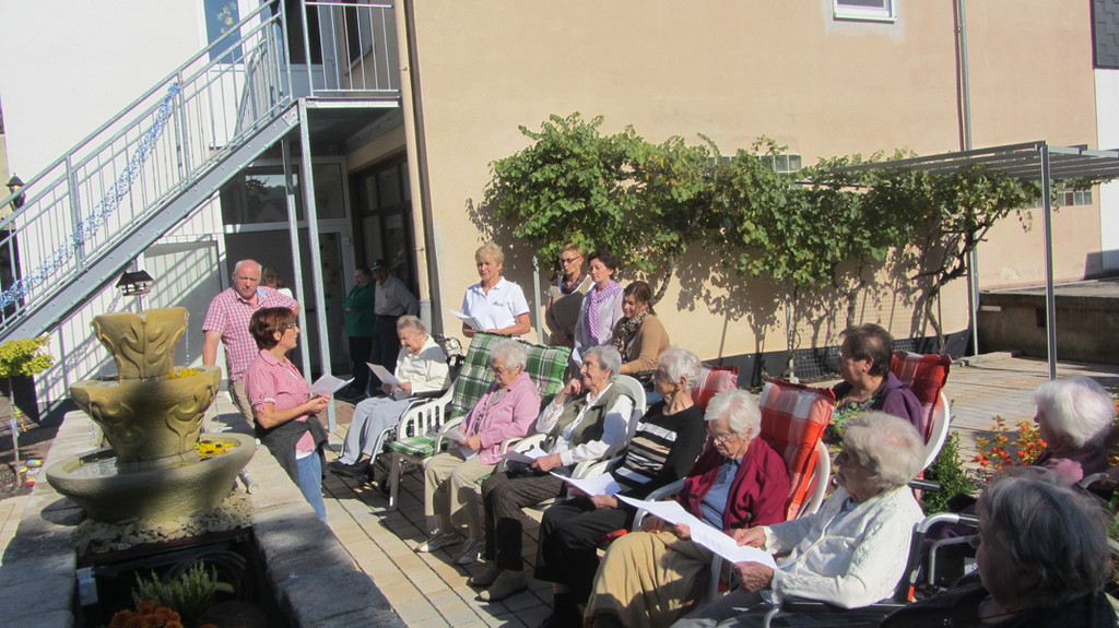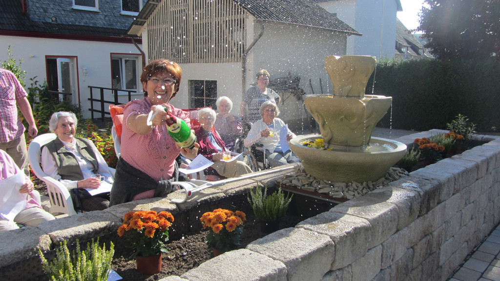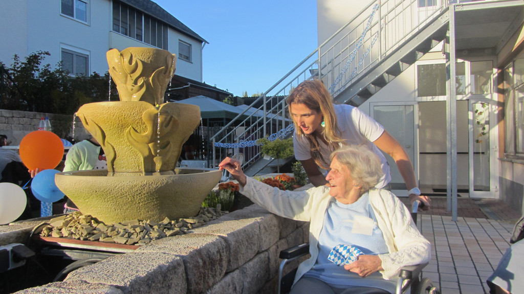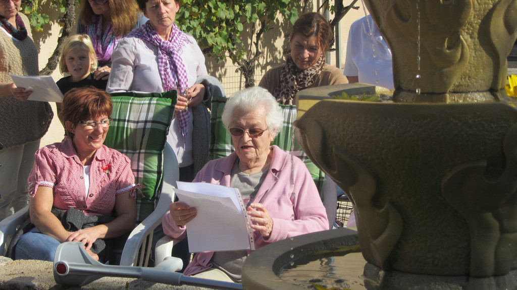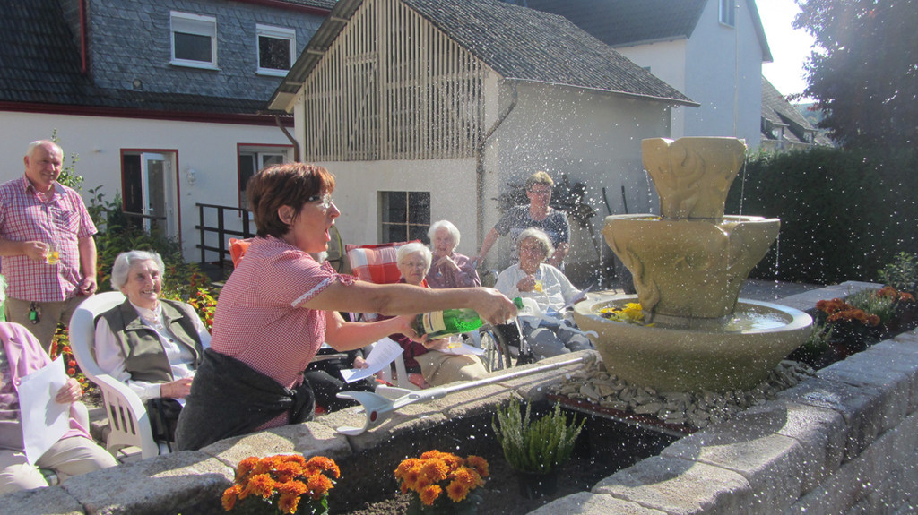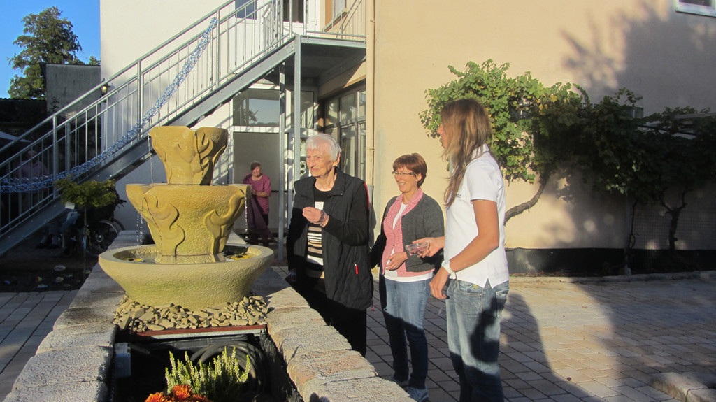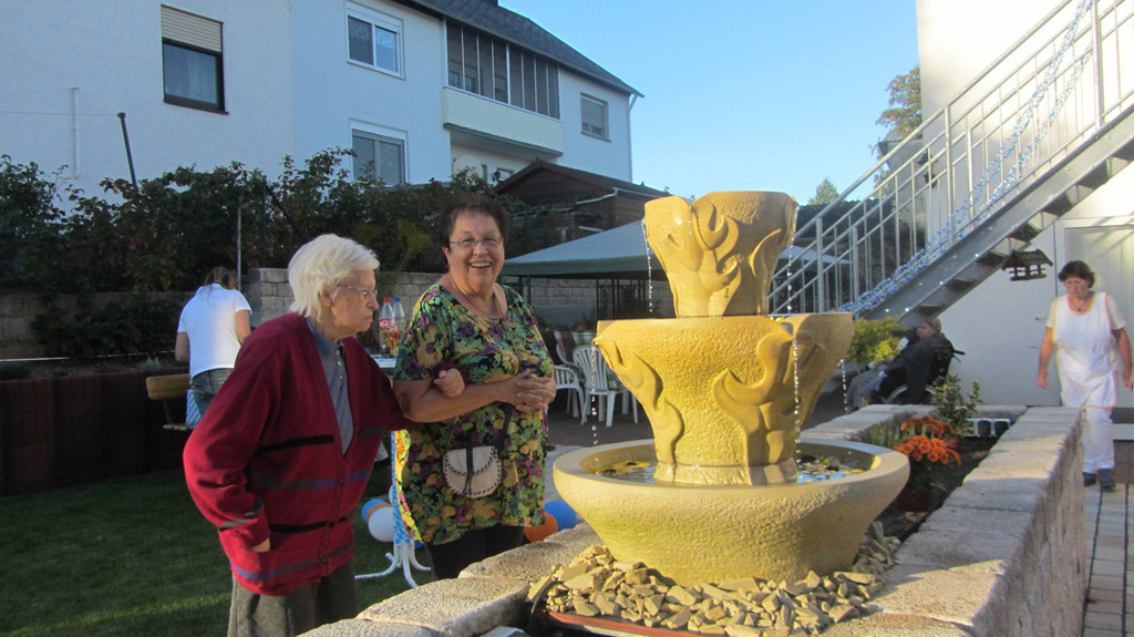 Das Altenpflegeheim Schöll verabschiedete am 27.09.2013 die warme Jahreszeit mit einem frohen Fest, an dem der eigens angefertigte Brunnen der Gartenanlage getauft und eingeweiht wurde.